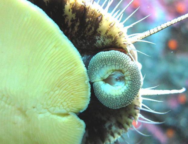 Juvenile abalone hide in cracks or under the spines of Cape sea urchins during the day but need to forage at night - putting them at risk of predation by octopuses, sea stars, crustaceans, snails and durophagous (shell-swallowing) fish.
