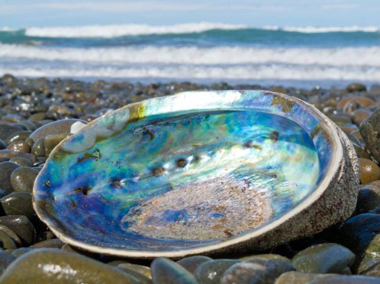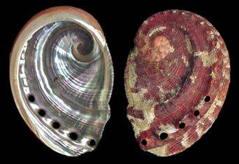 Abalone is a mollusc and part of a family that includes clams, mussels, sea slugs and octopuses. More specifically, it is a gastropod - literally meaning "stomache on a foot". It is a flattened sea snail with ear-shaped shells, which inhabits coastal waters across the world. The spiral seen in most sea snails is not easily seen in abalone, as it remains flat and open. The abalone shell is thickened with layers of nacre (mother-of-pearl) - iridescent layers of plates of a mineral called aragonite.