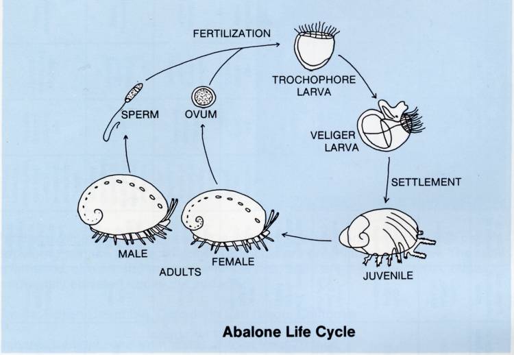 In nature, abalone are at risk of predation at all stages of their life. Their eggs and planktonic larvae are fed on by filter-feeders like barnacles, bivalves and shrimps.