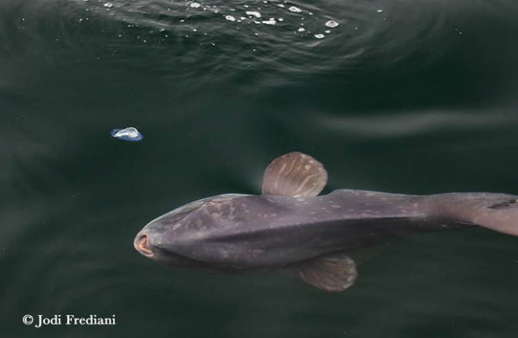 Because they are large and slow moving, sunfish are susceptible to a wide variety of skin parasites - sometimes over 40 species on a single fish - and they are literally habitats that move. Many of these parasites are hosted by the jellyfish that the sunfish consume.
