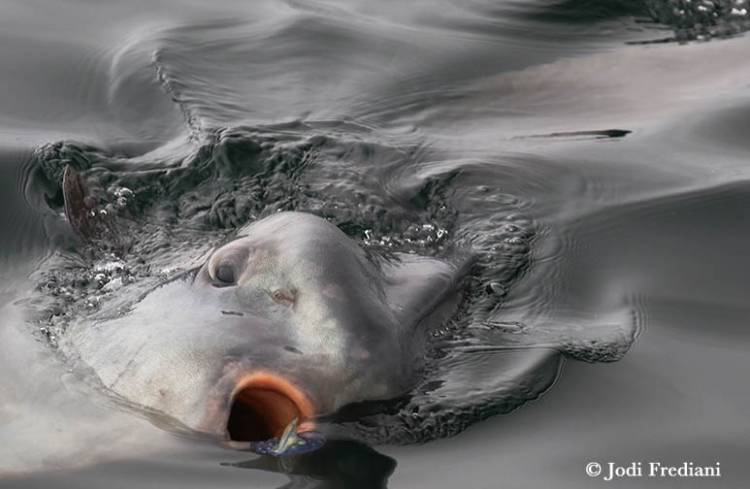 Sunfish are indeed strange. They have no true tail, and instead look like a fish that has been cut in half. Their elongated dorsal and anal fins flop about in sync, appearing as though a stingray has been turned on its side. When they do breach the surface, their fins might trick you into thinking that they are sharks, or their wide eyes might lead you to believe they are scared or confused. What is really happening here?
