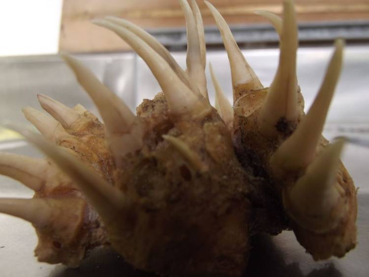 Deeper in their throats, they have large sets of pharyngeal jaws - with their long claw-like teeth, these certainly look a lot more intimidating than the beak! These teeth are used to grind and shred food on its way to a sunfish's stomach.