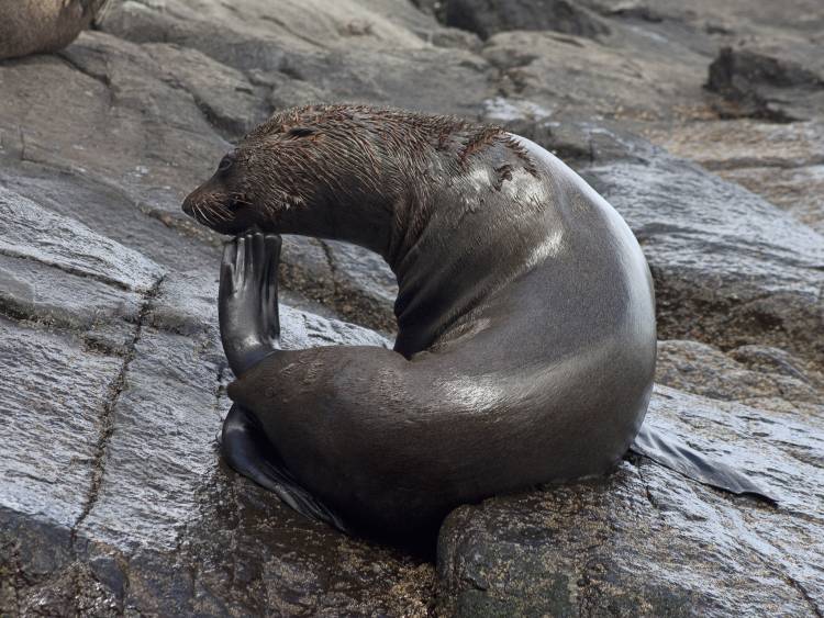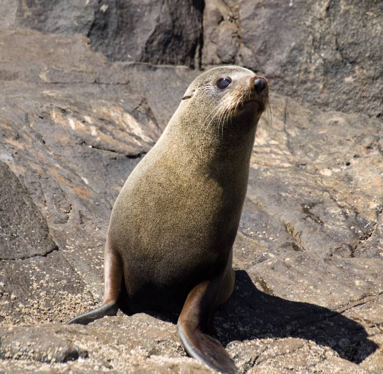 Cape fur seals, also known as South African seals or brown seals, are by far the largest and most muscular members of the fur sea family (more on that later). Technically they are divided into two subspecies, A. p. pusillus - which are larger and found on the southern African coast, and A. p. doriferus - which are smaller and occupy Australia's Victorian coast and Tasmania. Another difference between the two populations is that the South African seals eat mostly fish, while the Australian seals prey mostly on squid.