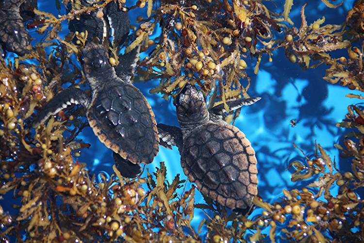 For loggerhead turtles, this lost period can be as long as seven to 12 years. Once reaching the water, a hatching will swim for up to 20 hours into the open ocean, hoping to avoid predators and stay as far away from the shoreline as possible. Out in the open ocean, these young turtles rely on floating seaweed beds and the natural ocean currents, conserving energy and putting their resources into growing.
