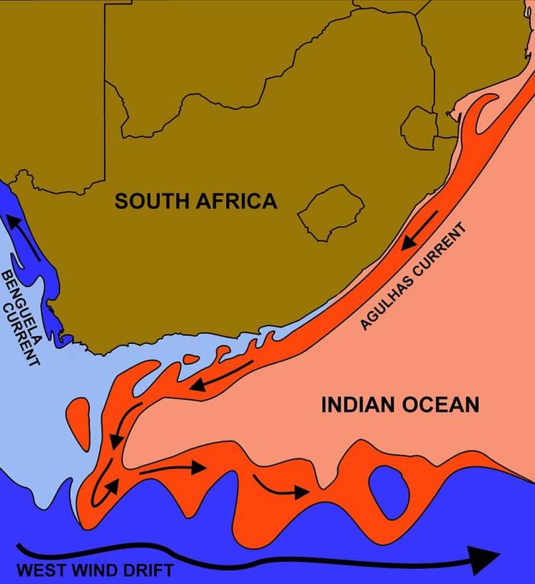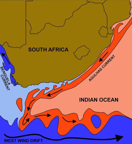 South Africa’s waters are unique. To the west, the Benguela Current of the cold Atlantic brings its frigid waters to the Cape. From the east, the warm sub-tropical Indian Ocean waters swept in by the Agulhas Current lap Durban beaches.