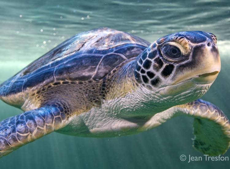 Sea turtles swim incredible distances. Loggerhead turtles easily migrate over 10 000km a year, while leatherbacks reach over 16 000km. Yoshi, a large loggerhead sea turtle released by the Two Oceans Aquarium swam 40 011km in 1 003 days - the longest tracked journey of any animal! This adds up to millions of kilometres in a turtle’s lifespan. Smaller turtles, or those with a more restricted diet, do not stray as far, but still swim thousands of kilometres.