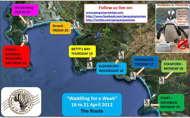Our first Waddle for a Week campaign in 2011 – in support of the endangered African penguin (you can a visit a few of these beautiful birds right here at the Sappi River Meander) – was such a success that we are running it again in 2012. Animal keepers across the country have started training for the 130km waddle, which starts in Gansbaai (Dyer Island colony) and ends in Simonstown (Boulders Beach colony).
