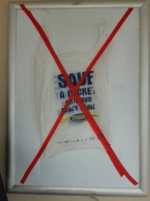 - All small shops (about 15) have now removed plastic shopping bags from their outlets permanently, while the larger supermarkets are committed to phasing out plastic shopping bags