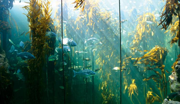 Animals in the Ocean Basket Kelp Forest Exhibit are fed at 12h00 every Wednesday and Saturday. The underwater forest is home to an array of fish and other sea creatures, which feed and take cover among the swaying kelp.