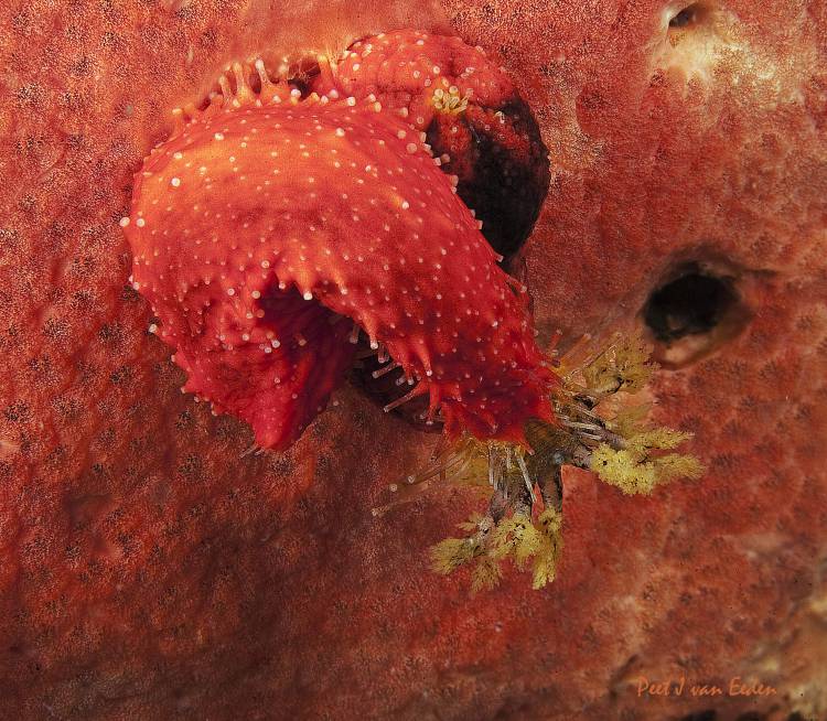 The red-chested sea cucumber (Pseudocnella insolens) is a strange little animal. It is related to urchins and starfish, but it is sausage-shaped with its head at one end and anus at the other. The sea cucumber has a host of interesting adaptations; for example, it raises its young by keeping them in pockets under its skin, and if threatened it can eject its poisonous guts (which grow back later).