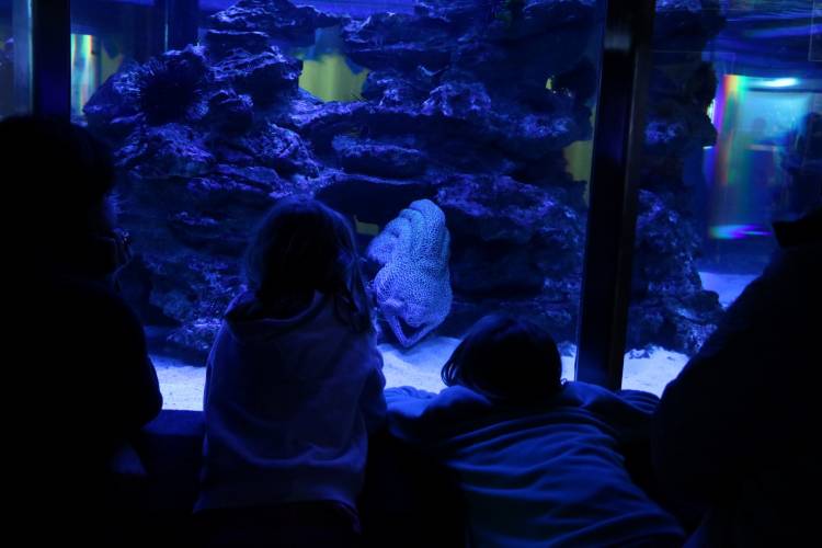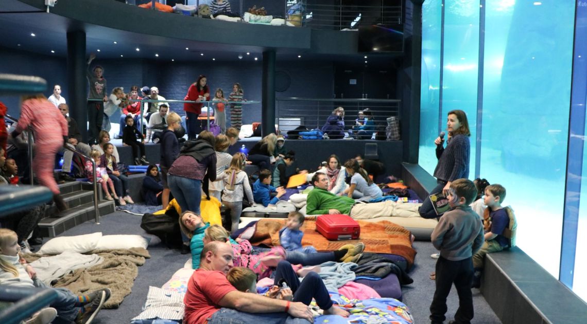 Finally, it was time for the evening to wind down. Children and parents gathered for the evening's animated movie, spread out in the warmth of our auditorium. As energy slowly dwindled, contented families made their way back to the Predator Exhibit, said their goodnights to their nine new ragged-toothed friends and called it a night.