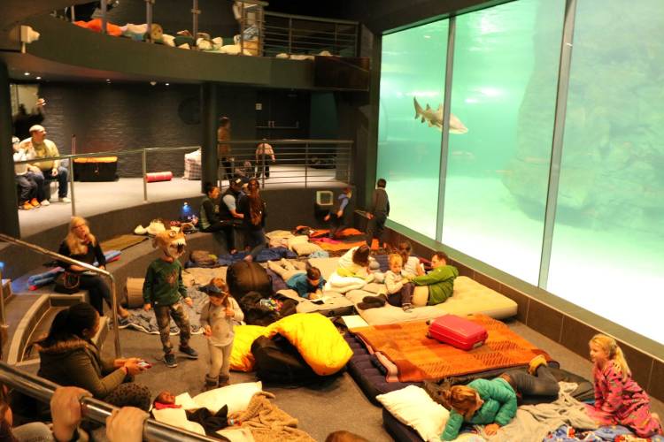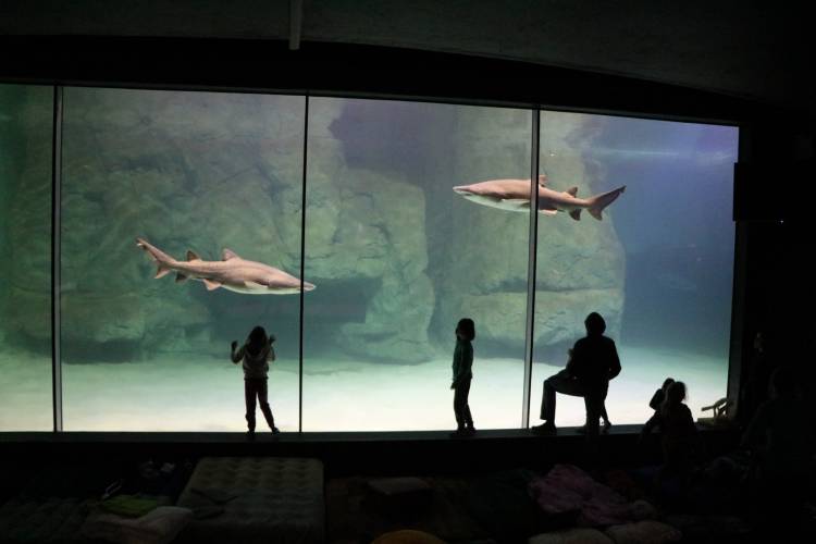 Our eager members, and their even more excited children, arrived at the Aquarium, equipped with mattresses, sleeping bags, pillows and pyjamas. With the Predator Exhibit's gallery illuminated only by soft blue light, occasionally obstructed by a shark shadow, there was a great hustle to get sleeping spots with the best views.