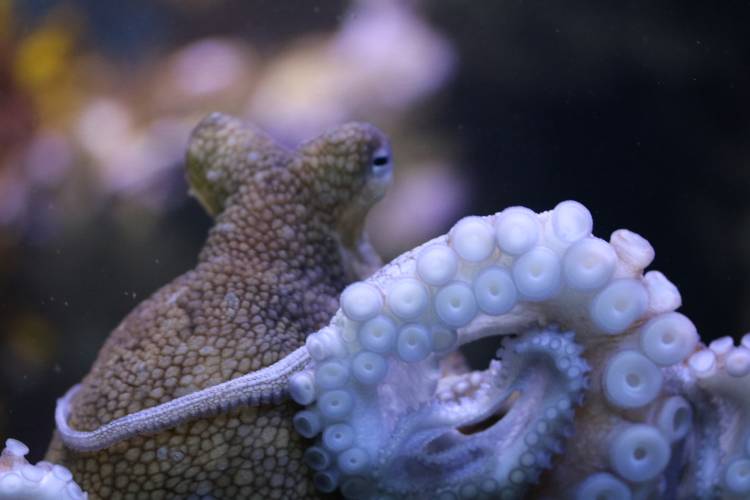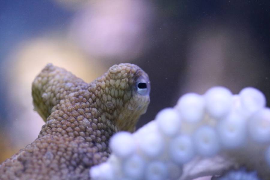 Those suckers are not just for grip, they are for feeling textures, measuring chemicals and tasting everything they touch. Our octopuses learn to recognise the people they care for, but by touch, not by sight.
