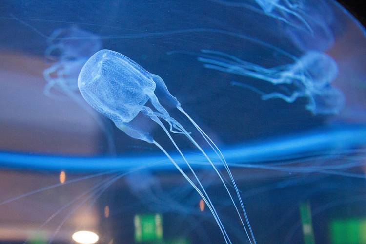 The box jellies are found off the west coast of South Africa and are often encountered in swarms by scuba divers.