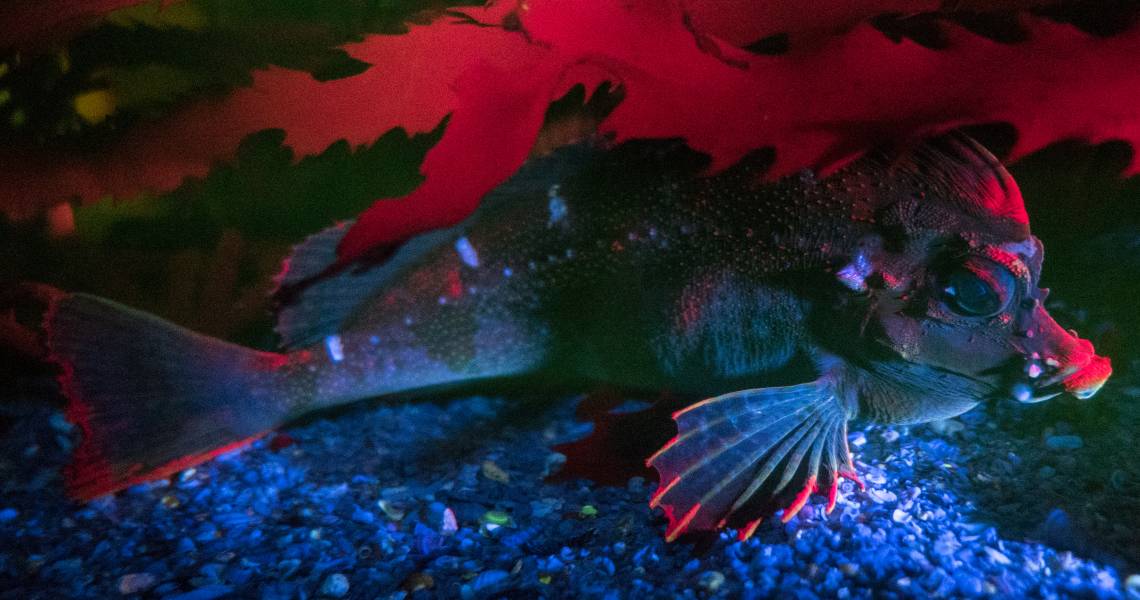 Jacques Vieira and a small team made up of Moving Sushi and other ocean advocates, including Ross Frylinck of the Sea-Change Project, came to the Two Oceans Aquarium one night in February to investigate and discover more about fluorescing animals. Once all the tourists and visitors had left for the day, the Aquarium turned off the lights. There in the dark, when the blue lights were shone on the different shark and fish species, something spectacular happened. Things were fluorescing that had not before been understood to even be capable of such actions. Penguins fluoresced, and so did crabs, horsefish, seahorses and the small puffadder and dark shysharks darting between the kelp.