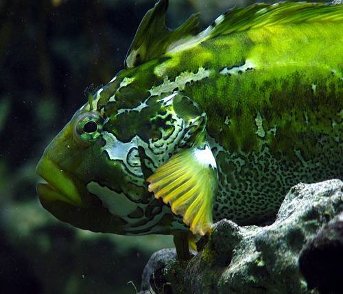 The common klipvis is a cryptic fish, which means it can change its appearance to blend into its environment. This individual has turned all shades of green to protect itself. Photo courtesy Ottie.