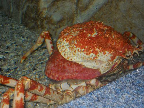 Last week, one of our giant spider crabs moulted. It was an amazing experience for everyone privileged enough to witness it. This image shows the new, soft, pink body of the crab as it gets ready to step out of the old shell. Isn’t nature simply amazing? Photo courtesy anikha2010.