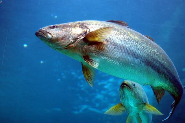 Giant yellowtail, seen here in our I&J Predator Exhibit, are fast torpedo-shaped predatory fish that feed on smaller fish and squid. They really are quite giant and the raggies can’t take all the credit for the impression that this exhibit invariably leaves on visitors. Photo courtesy paulscott56.