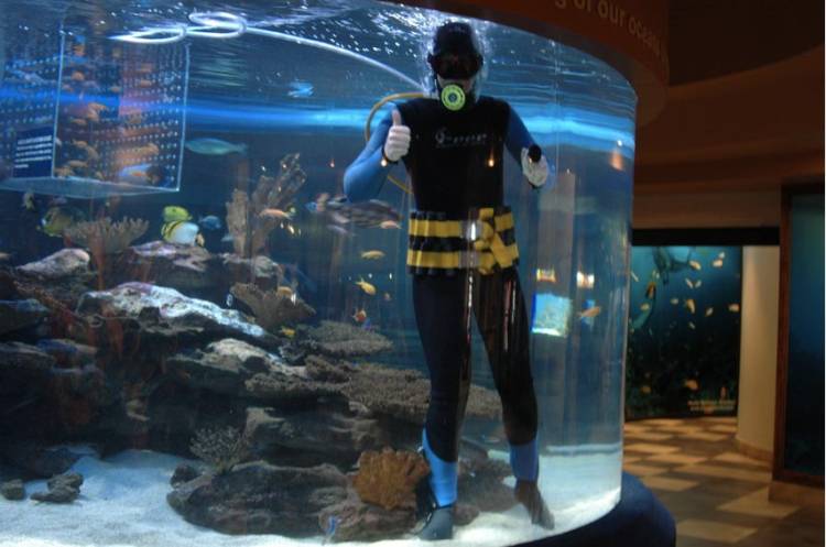 The aquarist in this large tropical exhibit has to watch out for some of the fish in there ... They like to bite and are rather territorial! Photo courtesy Katja Rock.