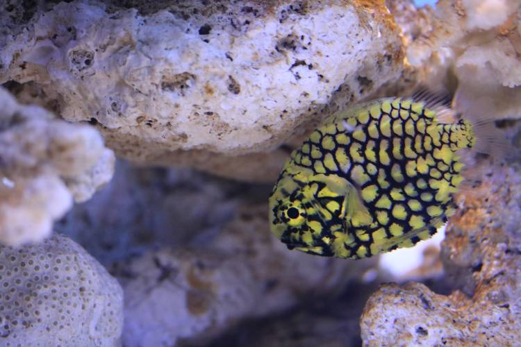 Thus, the pineapplefish was brought to the Aquarium, where water temperatures could be regulated to keep the fish comfortable. After spending a few days in quarantine, where its health was closely monitored, the pineapplefish now has its very own display and can be viewed by the public. Since this rescue a couple of weeks ago, Paul has revisited the site and a second pineapplefish was found that is now being monitored in our quarantine area.
