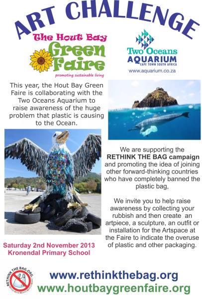 Staff from the Two Oceans Aquarium will also be present for a fun and important art challenge – help us raise awareness about the overuse of plastic and other packaging by building a sculpture out of collected rubbish! Get creative ... make a sculpture, outfit, installation or art piece to be displayed at the Artspace at the Faire, and help us spread an important conservation message. Hayley McLellan, who started the Rethink the Bag campaign, will also be present to talk about the severe damage that is being done to our oceans due to the single-use plastic bag.