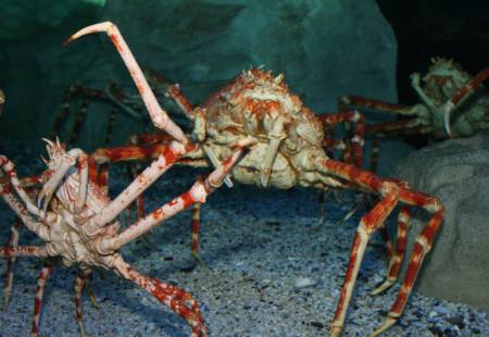 Did you know? As with all crustaceans, continual growth is impossible for giant spider crabs because of their hard exo-skeletons. To grow, the crabs have to shed this exo-skeleton by moulting. This is a complicated process which can take up to two days. Each moult is potentially life-threatening as the crab can become entrapped in its old shell. Even if the moult is successful, the sheer effort is sometimes so exhausting, that the crab dies soon afterwards.