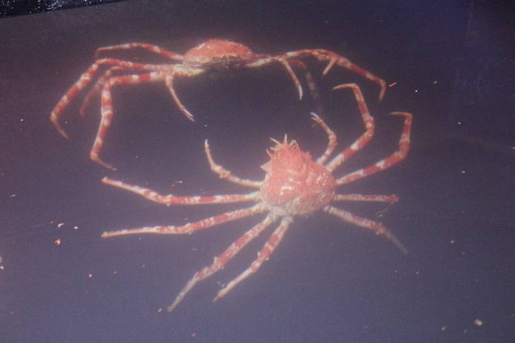Spider crabs are the largest crustaceans in the world – males grow to approximately 1m in length with a 4m leg stretch. These crabs live at depths of approximately 400m and in temperatures between 11ºC and 14ºC. Very little is known about the biology of giant spider crabs. It is virtually impossible to determine their age and we do not know when they reach sexual maturity. Their breeding habits are also a mystery to marine biologists.