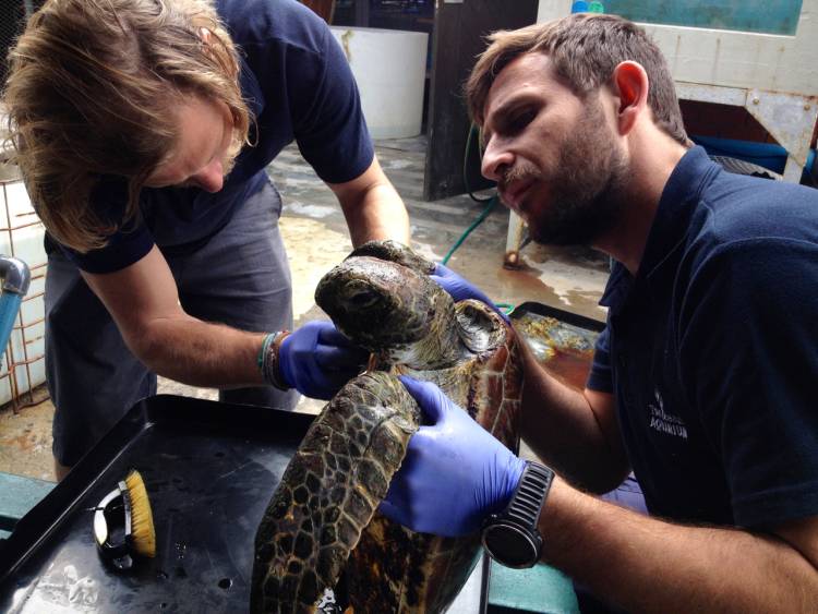 “The turtle seems to be in fairly good condition and quite strong, despite being covered in algae. It will receive full medical attention at the Aquarium, where it will be rehabilitated and released back into the ocean as soon as it is healthy,” says Kevin.