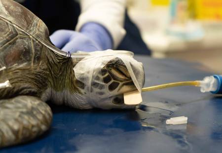 Unfortunately, Harry has been left with damage to the left side of his brain, leading to focal atrophy and the partial loss of vision in his right eye. In situations like this, the team has to make the ethical consideration of whether or not the animal has a fair chance of surviving in the wild – to release an animal that is unable to survive would be wrong. In the case of Harry, the team has determined that although his impairment is permanent, it is minor enough that it is unlikely to significantly impact his ability to survive or carry out “normal” sea turtle behaviours – foraging, evading predators, and swimming efficiently.
