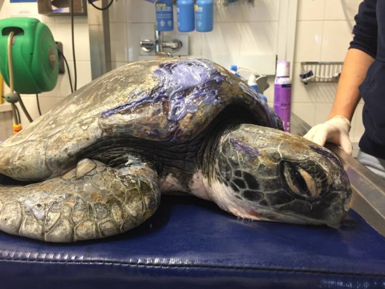 Harry was rescued at Stillbaai on 21 October 2020 by members of the public. He was incredibly weak, and suffering from severe carapace and skin necrosis known as “shell rot”, digestive issues associated with gut stasis caused by ingested plastic pollution, as well as some physical injuries, including a wound to his head. Despite his severe trauma, Harry regained strength quickly, and was dubbed the “magic sea turtle.”