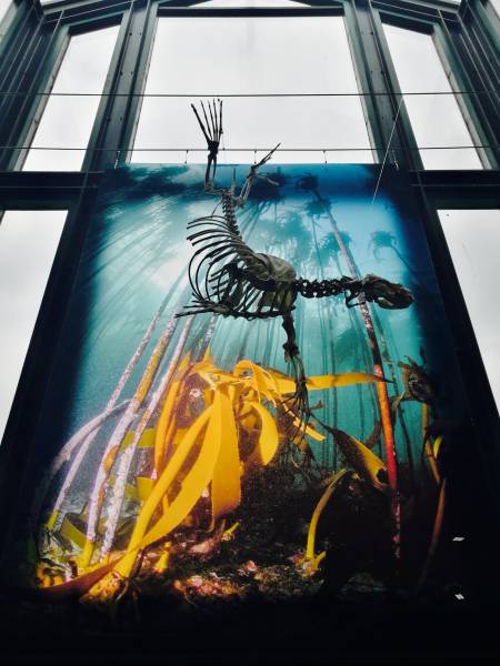 Answer: The skeleton that you can see on the ramp leading from the Touch Pool to the Penguin Exhibit, brought to you by OId Mutual Finance, is that of a South African fur seal (Arctocephalus pusillus pusillus), also known as a Cape fur seal. It was created for us by artist Lachlan Matthews.