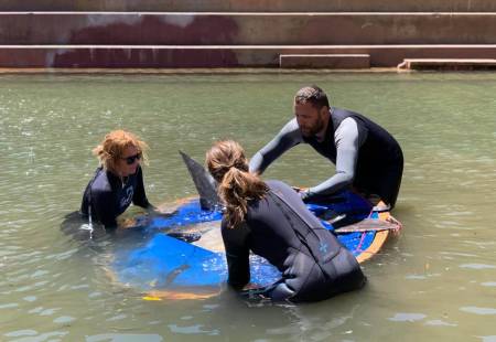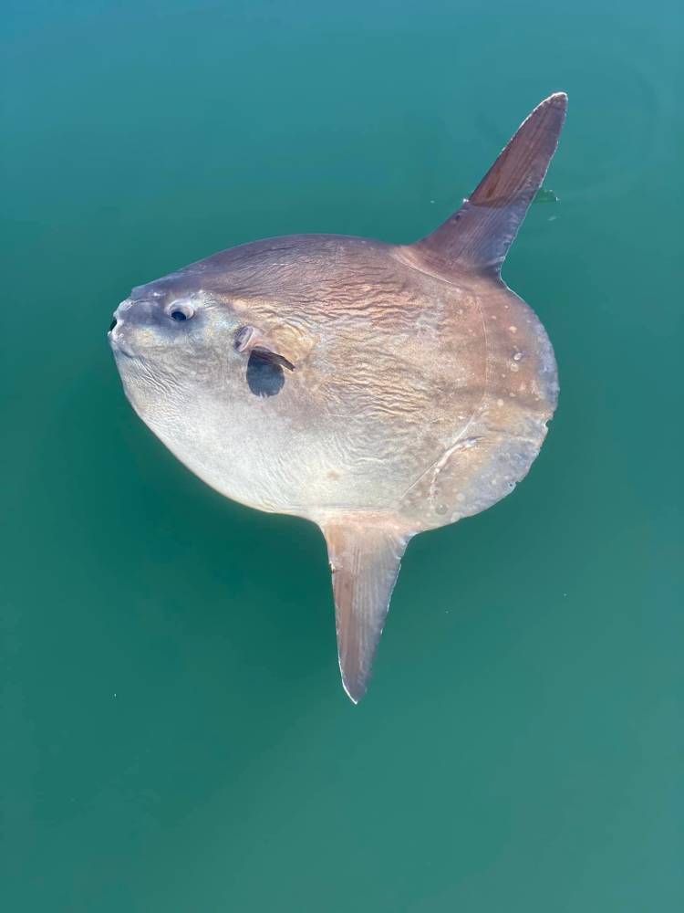 Although sunfish do sometimes use shallow waters for shelter from storms and predators, they rely on deep waters for survival - this is where their unique shape helps them dive deep to prey of jellies, salps, fish and squid. The Aquarium team were quick to swim out and collect the sunfish, bring it on board our small harbour patrol boat, and take it out beyond the harbour mouth - where it immediately swam off into the depths (in admittedly awkward style)!