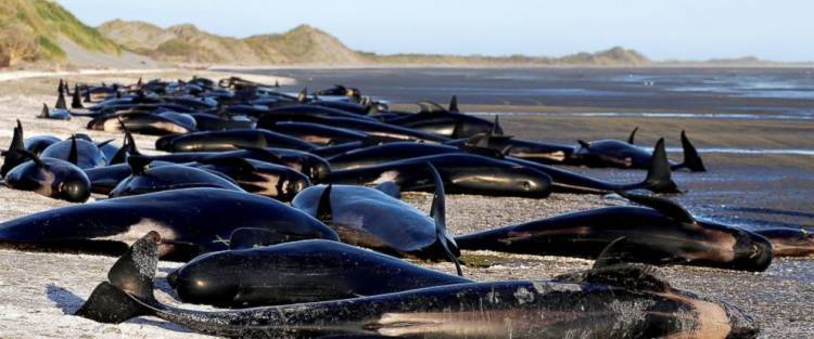 False killer whales are known to be susceptible to mass strandings - in one case over 800 became stranded. The exact reasons for these beachings are unknown, but current science suggests that it is due to loud, man-made noises disrupting the echolocation sense that they use to navigate.