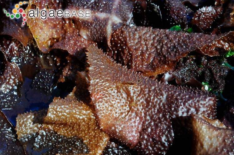 Tongue weed (Gigartina polycarpa) is another red algae, like purple laver, but, it anchors itself to a rock and grows short, fat stems with rough bumps that feel just like a real tongue!