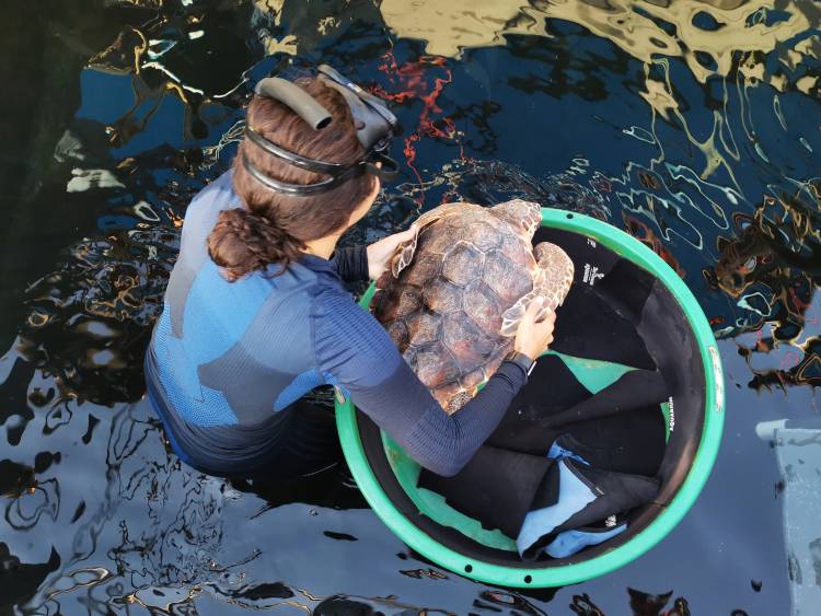 Pan has been given a clean bill of health and is undergoing some final monitoring before being considered "release ready". As has become a bit of a tradition here at the Two Oceans Aquarium, turtles that have spent a long time in the rehabilitation facility get to make use of the large space in our I&J Ocean Exhibit for exercise while awaiting the optimal season for release. Little Pan has joined Nobomvu, a larger sub-adult loggerhead turtle, and Bob, a large sub-adult green turtle, in this exhibit - be sure to stop by and learn about these incredible survivors this school holiday!