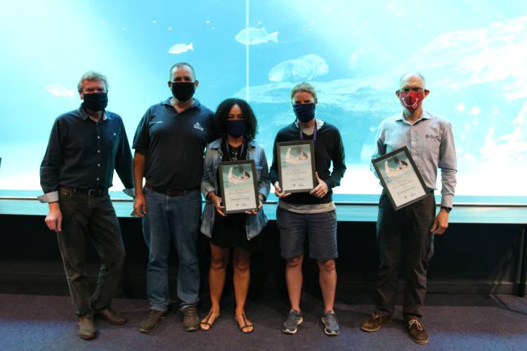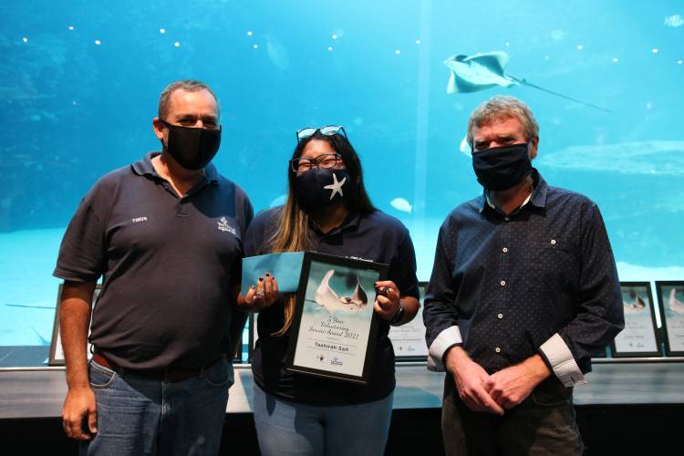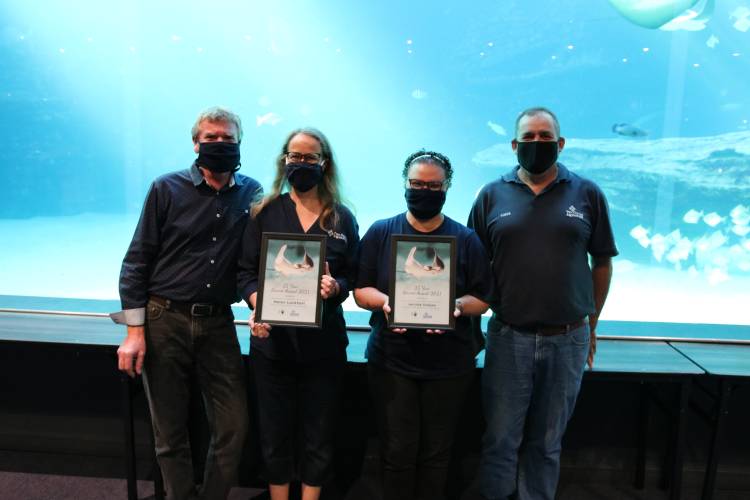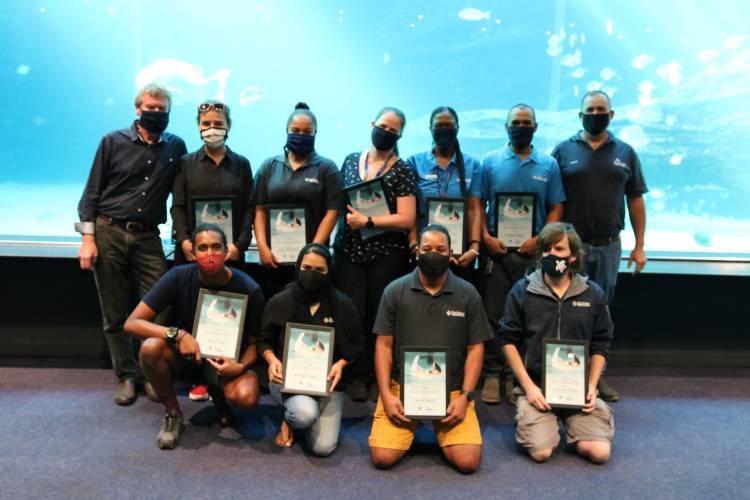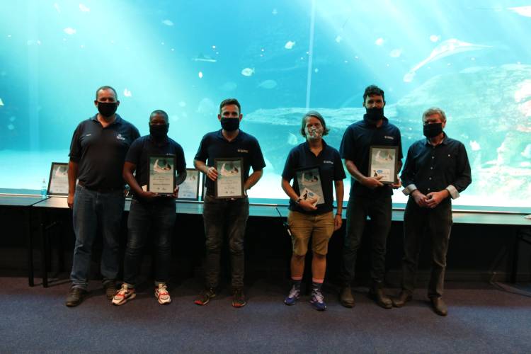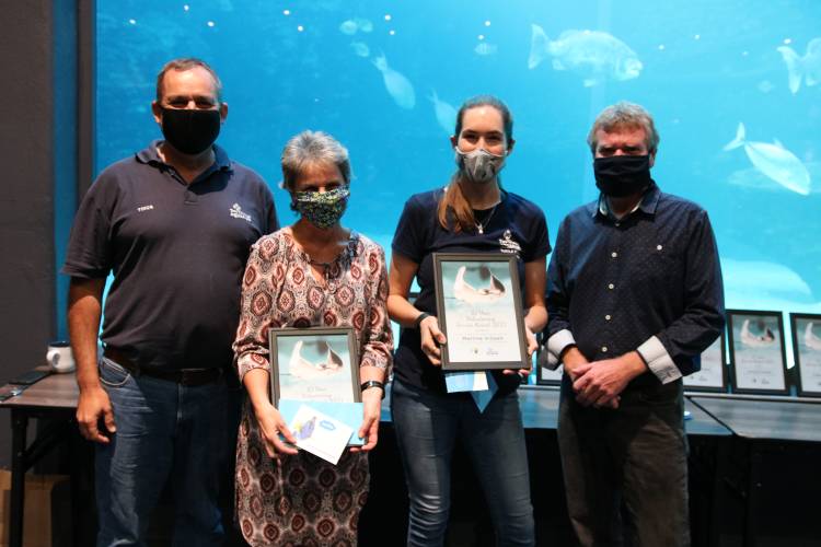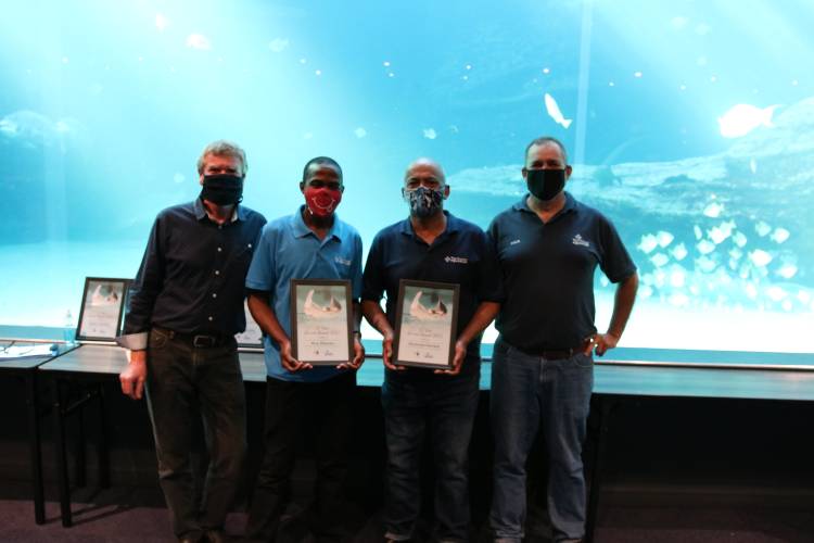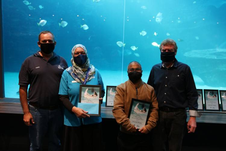 On 24 March 2021, we had the much-delayed opportunity to thank those who have served as staff and volunteers at the Aquarium and our non-profit partner, the Two Oceans Aquarium Education Foundation, for terms of 5, 10, 15, 20 and even 25 years. These recognitions were awarded by Two Oceans Aquarium CEO Michael Farquhar and General Curator Tinus Beukes.