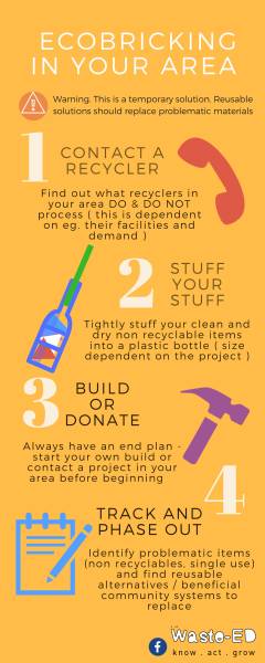 If you would like more information about EcoBricks, projects that you can support and what types of items are and aren't recycleable, check out the great information on the Waste-ED website.