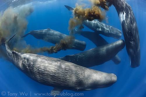 Whales move nutrients around in the ocean. They bring nutrients up to the surface of the ocean from the depths, where they are released into the "photic zone", stimulating the growth of tiny organisms that absorb CO2. This cycle is all thanks to whale poo - a true miracle of the ocean.