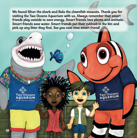 Now, in collaboration with the City of Cape Town, we are preparing to launch our third book in the series, I Live Smart. In I Live Smart, Beauty and Geo – along with the Aquarium’s mascots – teach us about living smartly through lessons about waste, water, electricity and biodiversity. The interactive dialogue allows children to become part of the storyline and to learn some valuable lessons when it comes to smart, environmentally friendly living.