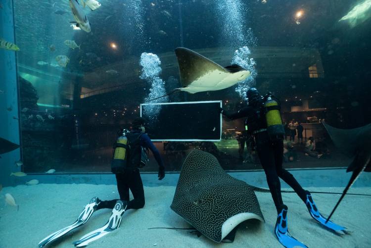 The I&J Ocean Exhibit and all of the species it houses are without a doubt exciting enough to look at. However, when visitors feel the need to get even closer to these beautiful animals, we offer scuba dives in this exhibit as well!