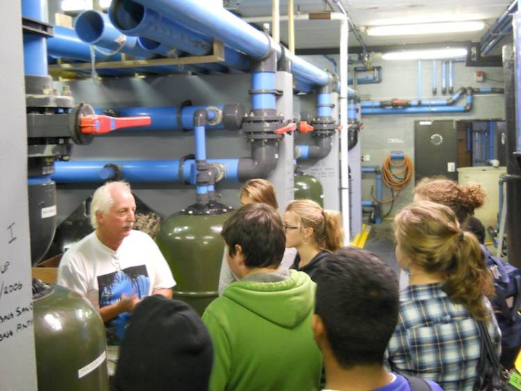Vincent Calder, a senior technician at the Aquarium, first talks about our elaborate alarm system, that goes off as soon as any temperature of any of our tanks deviates from the norm. He then shows the YBs our filter room, which contains several filters needed to clean the water before it gets distributed into various exhibits in the Aquarium
