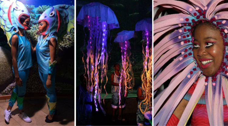 Our events season kicked off with a stunning bash hosted by the Cape Town Carnival at the Two Oceans Aquarium. The Carnival happens every year in March and it’s one of the hottest events on the South African calendar. In 2017, the Cape Town Carnival’s theme will be “Amaza!”, which means “ocean odyssey”. Fitting, then, that the Carnival decided to unveil their theme right here at Cape Town’s premier fishy destination.