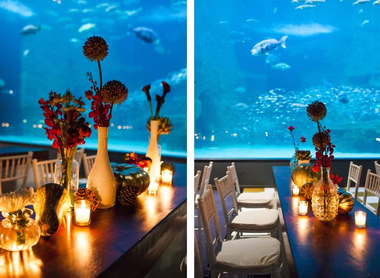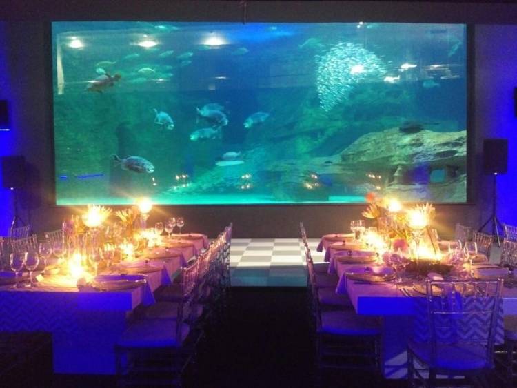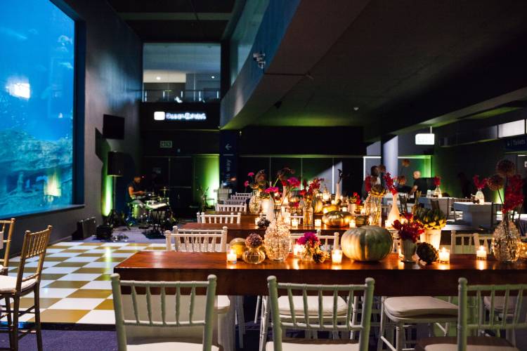 "In the absence of daylight, the multitude of colours were even more striking and wondrous. Then, moving through a room pitch dark except for the blue glow of jelly fish, the attendees arrived in the main venue which was the I&J Ocean Exhibit. Here they danced the night away in front of the huge acryclic window separating them and a magnitude of sea life,” Sorrento Events said on their blog.