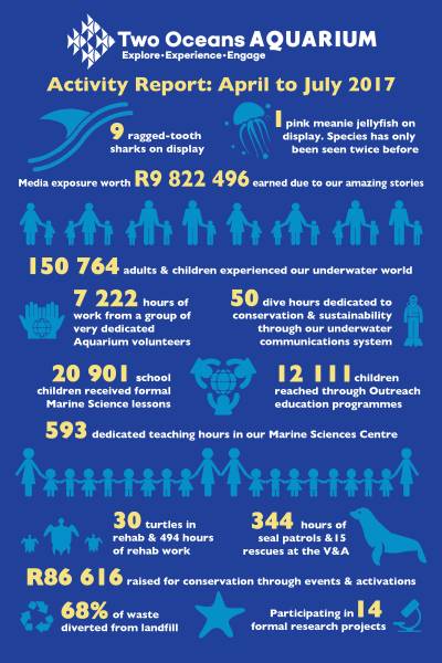 A quick glance at the past four months shows how every arm of our organisation endeavours to make a real difference, big or small, for the people of South Africa and their oceans and coasts. That is why an entrance ticket or an annual membership, or even a small online donation, to the Aquarium counts for so much more than simply a visit with the fish.