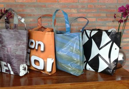 Rethink the Bag encourages the use of plastic bag alternatives that are crafted by local community projects/companies, using either recycled or sustainable materials and thus creating employment and diverting unnecessary waste from landfill. So it’s win, win, win for everyone! Providing the materials are in good condition, a company called Umoja can make quality shopping bags from your old banners, such as these Aquarium bags. Hosting a conference or reimagining school bags for your pupils? It’s time to try something different (contact Liliane at Umoja on 076 461 7036).