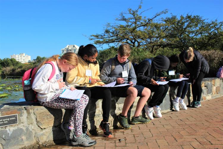 Before their trip on day two, the students kicked off the day with a treasure hunt around the Aquarium, which not only encouraged research skills but also taught them about all the wonderful species calling the Aquarium home. They then boarded the bus and took off to the Green Point Biodiversity Park, where they were divided into groups and did a map activity to learn about the history and importance of Green Point Park, and in particular, its wetlands.