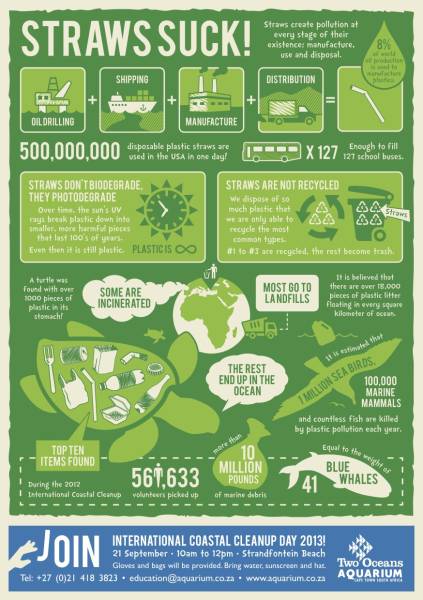 So just say no, because straws suck. And should you feel like doing something outdoorsy this Saturday, which will also benefit the environment, please join me at the Two Oceans Aquarium’s Coastal Clean-Up event. Hope to see you there!