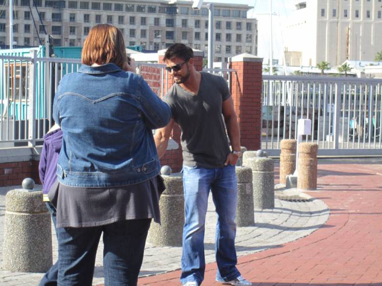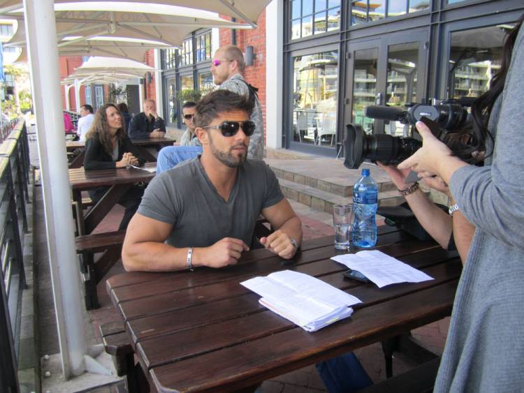 For a brief moment in time, Shoreline Café at the Two Oceans Aquarium served muscles: In the form of WWE wrestling superstar Justin Gabriel. He popped in for a quick visit today (7 July 2011) with his entourage and a crew from South African television station eTV to take in the view of the V&A Waterfront from our deck and, of course, to delight just about everyone around. His visit forms part of a whirlwind WWE tour of South Africa that kicks off in Cape Town tonight.