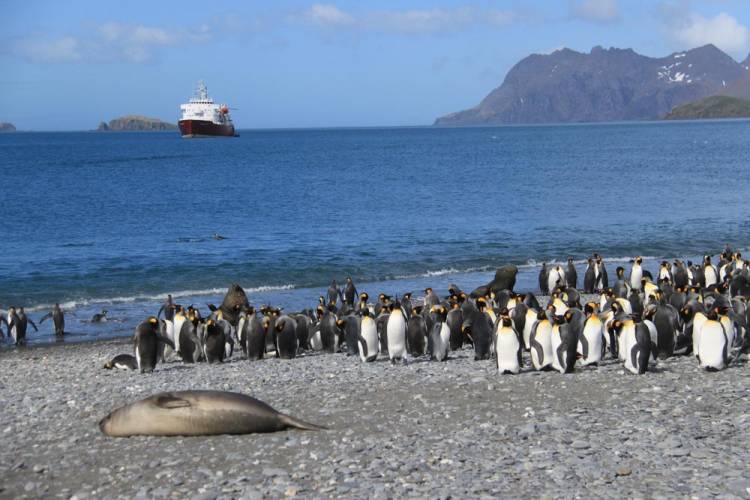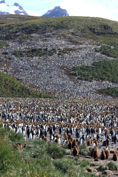 Salisbury Plain in the Antarctic region, not to be confused with the landmass of the same name in southern England, is famous for its king penguin breeding colony: An estimated 60 000 pairs of these birds breed on the island.