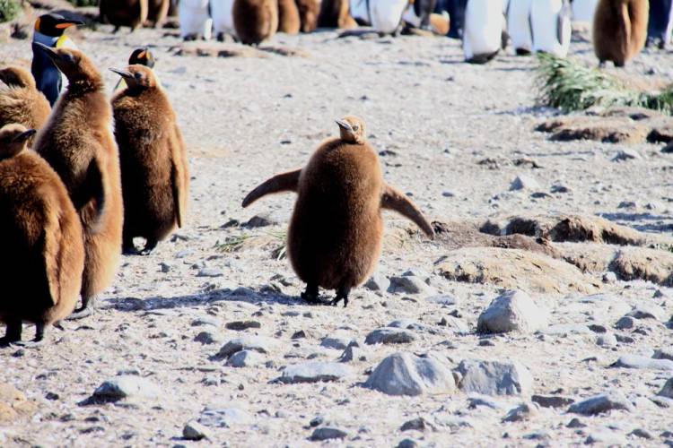 When a king penguin chick is about six weeks old, says ARKive, “It joins a group of chicks [in what is] known as a crèche.” This safety in numbers allows parents to go foraging simultaneously to bring back food for their “voracious offspring”.